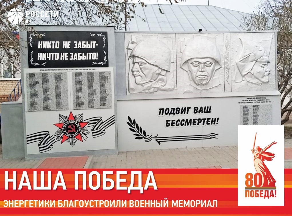 В преддверии 80-летия Великой Победы энергетики привели в порядок военный мемориал, установленный в честь земляков, павших в годы Гражданской и Великой Отечественной войн. Были отреставрированы и покрашены конструкции памятника и элементы звезды Вечного огня. Также заменены плафоны уличного освещения и благоустроена прилегающая территория.