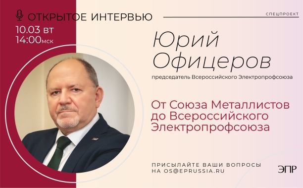 Открытое интервью с Председателем Всероссийского Электропрофсоюза Юрием Офицеровым. Тема интервью: «От Союза Металлистов до Всероссийского Электропрофсоюза».